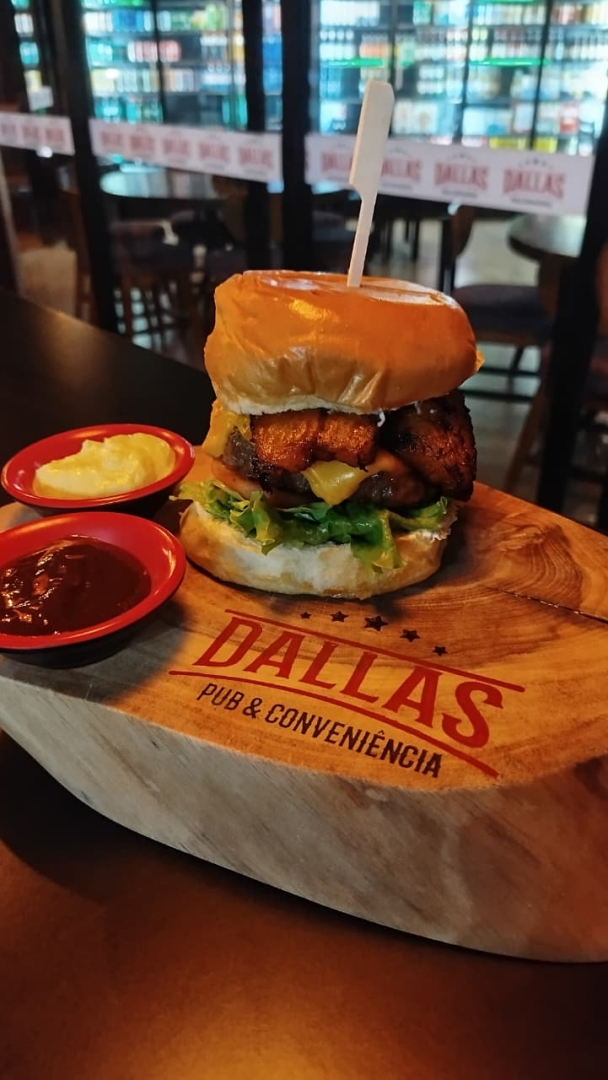 Burguer de 180gr assados na churrasqueira, banana frita, queijo cheddar, pão brioche, geleia de pimenta, bacon crocante, alface, tomate, cebola roxa e molho especial. (Acompanha molho a sua escolha).